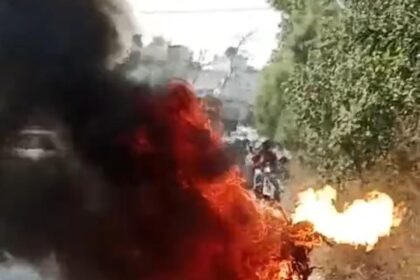 रेवाड़ी -दिल्ली रोड़ पर जोनावास गाँव के पास एक चलती बाइक में आचनक आग…