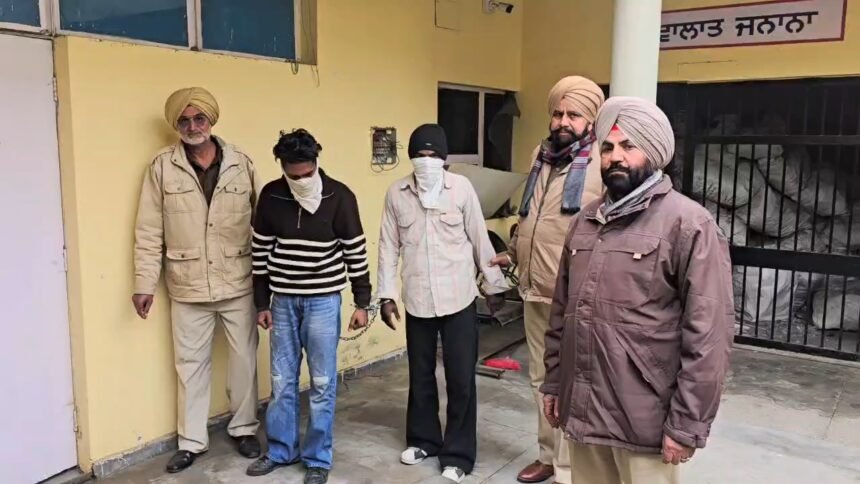 मोगा पुलिस ने मोगा बेदी नगर में एक लड़के के गले से चांदी की चेन स्नैचिंग के मामले में त्वरित कार्रवाई करते हुए दो आरोपियों को गिरफ्तार कर उनके कब्जे से वारदात में इस्तेमाल मोटरसाइकिल बरामद की है। इस मामले में जानकारी देते हुए डीएसपी सिटी गुरप्रीत सिंह ने बताया कि भीम नगर कैंप मार्केट के रहने वाली प्रीति नाम के एक महिला ने 7 जनवरी को एक शिकायत की थी। 7 जनवरी शाम करीब 5:30 बजे वह अपने बेटे रमन कुमार के साथ बेदी नगर, मोगा में किरयाना का सामान लेने गई थी। जब उसका बेटा दुकान के अंदर सामान लेने गया, तभी तीन अज्ञात युवक एक मोटरसाइकिल पर वहां पहुंचे। उनमें से दो युवक नीचे उतरे और एक युवक ने उसके बेटे के गले से चांदी की चेन झपट ली। इसके बाद तीनों आरोपी मोटरसाइकिल पर सवार होकर मौके से फरार हो गए। पुलिस ने तुरंद अज्ञात लोगों पर मामला दर्ज करके जांच के दौरान पहले आरोपी विशाल सिंह निवासी सूरज नगर, मोगा और राहुल निवासी दशमेश नगर, मोगा को 9 जनवरी को गिरफ्तार कर लिया और उनके कब्जे से एक काले रंग की मोटरसाइकिल स्प्लेंडर नंबर PB-09-Z-8044 बरामद की। दोनों आरोपियों को आज 10 जनवरी माननीय अदालत में पेश कर रिमांड हासिल किया जाएगा, ताकि मामले की गहनता से जांच की जा सके।