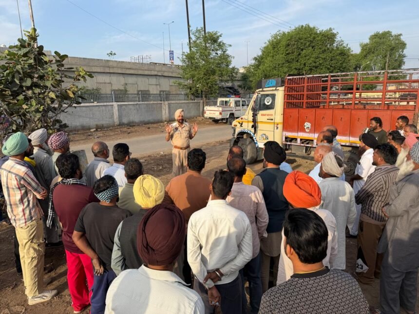 ਅੱਜ ਮਿਤੀ 06-04-2025 ਨੂੰ ਮਾਣਯੋਗ ਸੀਨੀਅਰ ਕਪਤਾਨ ਪੁਲਿਸ ਮੋਗਾ ਜੀ ਦੇ ਦਿਸ਼ਾ ਨਿਰਦੇਸ਼ ਹੇਠ ਅਤੇ ਸਰਦਾਰ ਗੁਰਪ੍ਰੀਤ ਸਿੰਘ ਡੀਐਸਪੀ ਸਬ ਡਿਵੀਜ਼ਨ ਮੋਗਾ ਅਤੇ ਡੀਐਸਪੀ ਟਰੈਫਿਕ ਮੋਗਾ ਜੀ ਦੀ ਰਹਿਨੁਮਾਈ ਹੇਠ ਲੱਕੜ ਮੰਡੀ ਮੋਗਾ ਦੇ ਆੜਤੀ, ਵਪਾਰੀ ,ਮਜ਼ਦੂਰਾ ਅਤੇ ਡਰਾਈਵਰਾਂ ਆਦਿ ਨੂੰ ਟਰੈਫਿਕ ਚਿੰਨਾਂ ਸਬੰਧੀ, ਟ੍ਰੈਫਿਕ ਨਿਯਮਾ ਦੀ ਪਾਲਣਾ ਕਰਨ ਸਬੰਧੀ, 112 ਹੈਲਪ ਲਾਈਨ ਨੰਬਰ ਸਬੰਧੀ, ਨਸ਼ਿਆਂ ਤੋਂ ਦੂਰ ਰਹਿਣ ਸਬੰਧੀ ਅਤੇ ਸਾਈਬਰ ਕ੍ਰਾਈਮ ਰਾਹੀ ਹੋ ਰਹੀਆਂ ਠੱਗੀਆਂ ਤੋਂ ਬਚਣ ਸਬੰਧੀ ਵਿਸਥਾਰਪੂਰਵਕ ਜਾਗਰੂਕ ਕੀਤਾ ਗਿਆ । ਏਐਸਆਈ ਕੇਵਲ ਸਿੰਘ ਇੰਚਾਰਜ ਟਰੈਫਿਕ ਐਜੂਕੇਸ਼ਨ ਸੈੱਲ ਮੋਗਾ ਨੇ ਸੰਬੋਧਨ ਕੀਤਾ । ਏਐਸਆਈ ਕੇਵਲ ਸਿੰਘ ਇੰਚਾਰਜ ਟਰੈਫਿਕ ਐਜੂਕੇਸ਼ਨ ਸੈੱਲ ਮੋਗਾ ਨੇ ਸਾਰਿਆਂ ਨੂੰ ਟਰੈਫਿਕ ਚਿੰਨਾ ਸਬੰਧੀ ਵਿਸਥਾਰਪੂਰਵਕ ਜਾਣਕਾਰੀ ਦਿੱਤੀ ਗਈ ਸਾਰਿਆਂ ਨੂੰ ਟਰੈਫਿਕ ਨਿਯਮਾਂ ਦੀ ਪਾਲਣਾ ਕਰਨ, ਡਰਾਈਵਿੰਗ ਲਾਈਸੈਂਸ ਬਣਵਾਉਣ, ਓਵਰ ਸਪੀਡ ਵਹੀਕਲ ਨਾ ਚਲਾਉਣ ,ਦੋ ਪਈਆ ਵਾਹਣ ਚਲਾਉਂਦੇ ਸਮੇਂ ਹੈਲਮਟ ਦੀ ਵਰਤੋਂ ਕਰਨ, ਨਸ਼ਾ ਕਰਕੇ ਵਹੀਕਲ ਨਾ ਚਲਾਉਣ, ਵਹੀਕਲਾਂ ਦੇ ਡਾਕੂਮੈਂਟਸ ਪੂਰੇ ਰੱਖਣ ਸਬੰਧੀ , 112 ਹੈਲਪ ਲਾਈਨ ਨੰਬਰ ਸਬੰਧੀ ਵੀ ਵਿਸਥਾਰਪੂਰਵਕ ਜਾਗਰੂਕ ਕੀਤਾ । ਇਸ ਤੋਂ ਇਲਾਵਾ ਨਸ਼ਿਆਂ ਤੋਂ ਦੂਰ ਰਹਿਣ ਸਬੰਧੀ ਨਸ਼ੇ ਦੇ ਮਾੜੇ ਪ੍ਰਭਾਵਾਂ ਸਬੰਧੀ ਅਤੇ ਨਸ਼ਾ ਤਸਕਰਾਂ ਦੀ ਜਾਣਕਾਰੀ ਹੈਲਪ ਲਾਈਨ ਨੰਬਰ 9779100200 ਪਰ ਦੇਣ ਦੀ ਅਪੀਲ ਕੀਤੀ । ਸਾਈਬਰ ਕ੍ਰਾਈਮ ਰਾਹੀਂ ਹੋ ਰਹੀਆਂ ਠੱਗੀਆਂ ਤੋਂ ਬਚਣ ਸਬੰਧੀ ਅਤੇ ਸਾਈਬਰ ਸੈਲ ਹੈਲਪ ਲਾਈਨ ਨੰਬਰ 1930 ਸਬੰਧੀ ਵੀ ਜਾਗਰੂਕ ਕੀਤਾ ਗਿਆ। ਇਸ ਮੌਕੇ ਐਸਆਈ ਸੁਖਮੰਦਰ ਸਿੰਘ ਇੰਚਾਰਜ ਟਰੈਫਿਕ ਸਟਾਫ ਮੋਗਾ, ਸੰਜੀਵ ਕੁਮਾਰ ਲੱਡੂ ,ਬਾਊ ਰਾਮਾ, ਬਾਊ ਸ਼ਮੀ ਆਦਿ ਹਾਜਰ ਸਨ ।