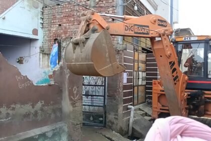 जेल में बंद नशा तस्कर की अवैध संपत्ति पर चला नगर पंचायत का पीला पंजा