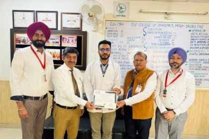 आई.एस.एफ.कालेज आफ फार्मेसी के छात्र दक्ष ठाकुर राष्ट्रीय कांफ्रेंस में सम्मानित
